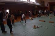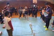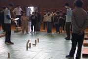 アリーナに集まり、モルック大会を行いました。リーグ戦、決勝トーナメントと行いました。